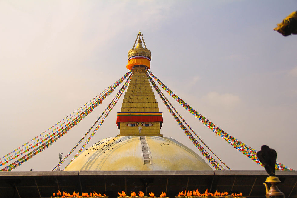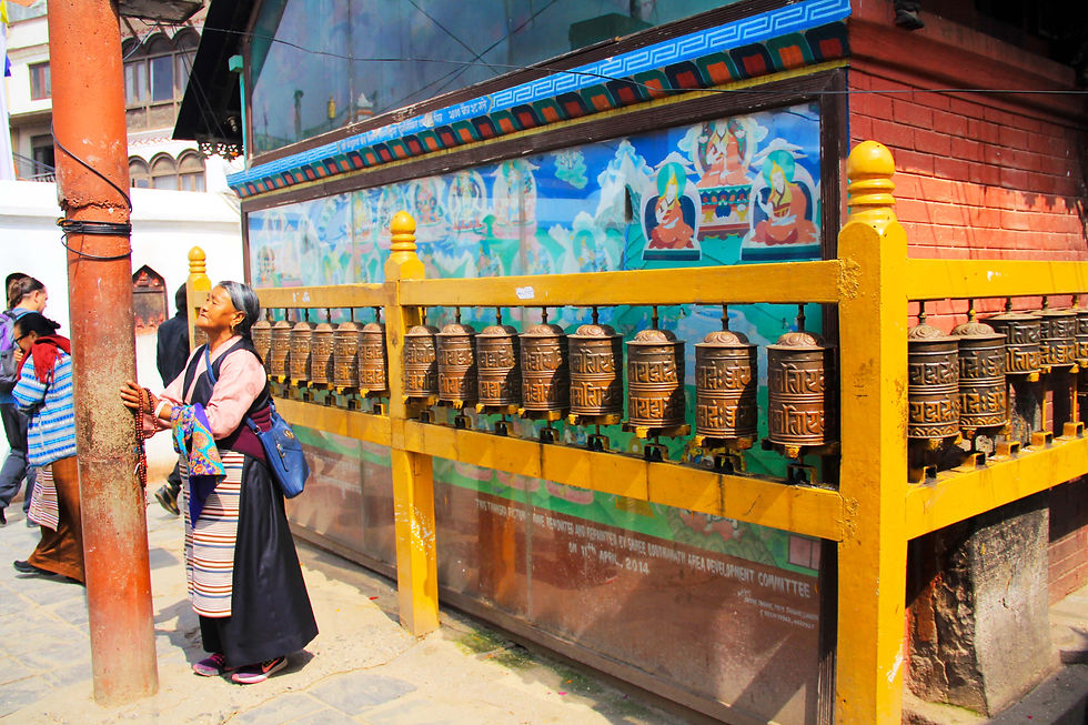 Orando en la Estupa budista de Boudhanath, Katmandú.
